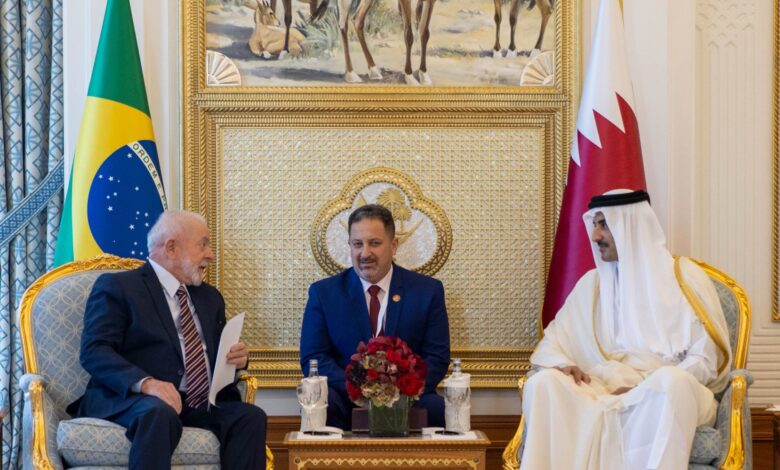 عقد حضرة صاحب السمو الشيخ تميم بن حمد آل ثاني أمير البلاد المفدى، جلسة مباحثات رسمية بالديوان الأميري اليوم مع فخامة الرئيس لويس إيناسيو لولا دا سيلفا رئيس جمهورية البرازيل الاتحادية الصديقة.جرى خلال الجلسة بحث أوجه تطوير التعاون المشترك بين البلدين لا سيما في مجالات الطاقة والاقتصاد والاستثمار، بالإضافة إلى تبادل وجهات…