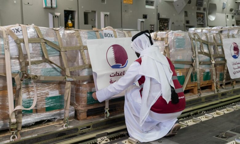 توجهت إلى مدينة العريش في جمهورية مصر العربية الشقيقة، اليوم، طائرة تابعة للقوات المسلحة القطرية، تحمل 41 طنا من المواد الغذائية، مقدمة من صندوق قطر للتنمية، تمهيدا لنقلها إلى غزة، ليبلغ بذلك مجموع الطائرات 14 طائرة بإجمالي 533 طنا من المساعدات.وتأتي هذه المساعدات في إطار مساندة دولة قطر للشعب الفلسطيني الشقيق، ودعمها…