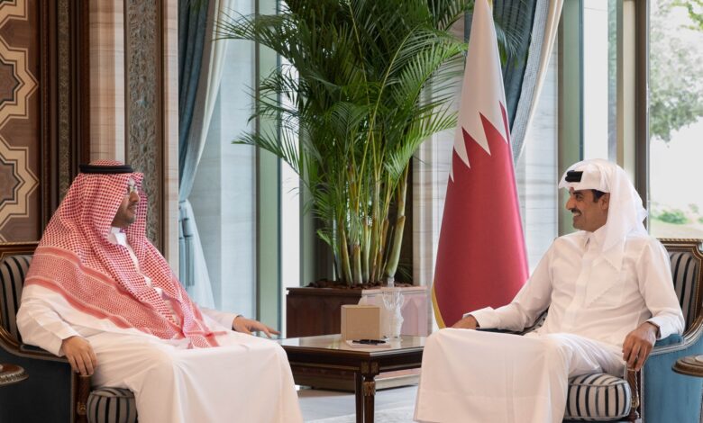 استقبل حضرة صاحب السمو الشيخ تميم بن حمد آل ثاني أمير البلاد المفدى، بمكتبه بقصر لوسيل صباح اليوم، صاحب السمو الملكي الأمير تركي بن محمد بن فهد بن عبدالعزيز آل سعود وزير الدولة عضو مجلس الوزراء بالمملكة العربية السعودية الشقيقة، والوفد المرافق، بمناسبة زيارته للبلاد.وفي بداية المقابلة، نقل صاحب السمو الملكي الأمير…