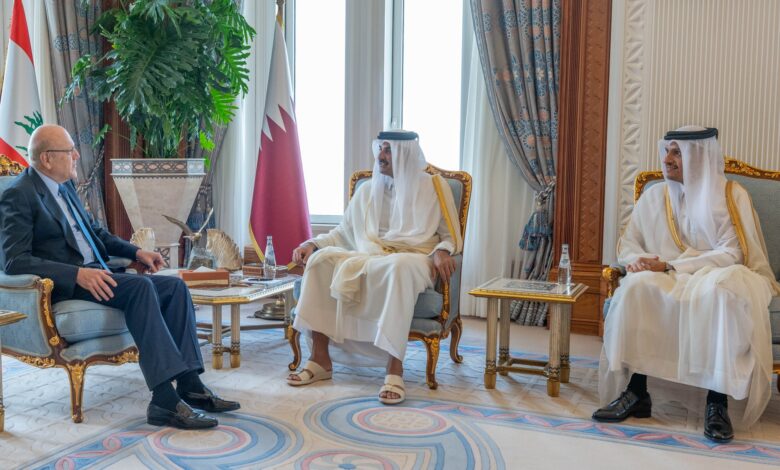استقبل حضرة صاحب السمو الشيخ تميم بن حمد آل ثاني أمير البلاد المفدى، في مكتبه بالديوان الأميري صباح اليوم، دولة السيد نجيب ميقاتي رئيس حكومة تصريف الأعمال بالجمهورية اللبنانية الشقيقة والوفد المرافق، وذلك بمناسبة زيارته للبلاد.جرى خلال المقابلة استعراض آخر تطورات الأوضاع في الأراضي الفلسطينية والمنطقة، إضافة إلى مناقشة العلاقات الثنائية بين…