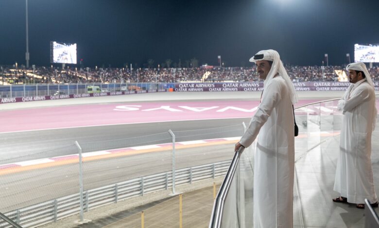 شهد حضرة صاحب السمو الشيخ تميم بن حمد آل ثاني أمير البلاد المفدى، مساء اليوم، ختام جائزة الخطوط الجوية القطرية الكبرى للفورمولا-1 قطر 2023، في حلبة لوسيل الدولية.وفي بداية الزيارة، قام سموه بجولة في مناطق إدارة السباق المخصصة للفرق المشاركة، اطلع خلالها على آخر استعدادات وتجهيزات سيارات الفورمولا-1 قبل خوض السباق الرئيسي.كما…