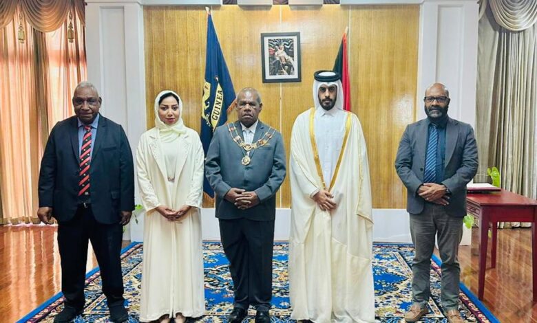 تسلم فخامة السير بوب داداي، الحاكم العام لدولة بابوا غينيا الجديدة المستقلة، أوراق اعتماد سعادة السيدة فوزية بنت إدريس سلمان السليطي، سفيرا فوق العادة مفوضا لدولة قطر (غير مقيم) لدى دولة بابوا غينيا الجديدة المستقلة.ونقلت سعادة السفير تحيات حضرة صاحب السمو الشيخ تميم بن حمد آل ثاني أمير البلاد المفدى، إلى فخامة…