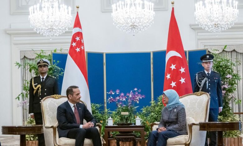 استقبلت فخامة الرئيسة حليمة يعقوب رئيسة جمهورية سنغافورة، اليوم، معالي الشيخ محمد بن عبدالرحمن بن جاسم آل ثاني رئيس مجلس الوزراء وزير الخارجية، بقصر استانا الرئاسي بالعاصمة سنغافورة.وفي بداية المقابلة، نقل معالي رئيس مجلس الوزراء وزير الخارجية، تحيات حضرة صاحب السمو الشيخ تميم بن حمد آل ثاني أمير البلاد المفدى، إلى فخامة…