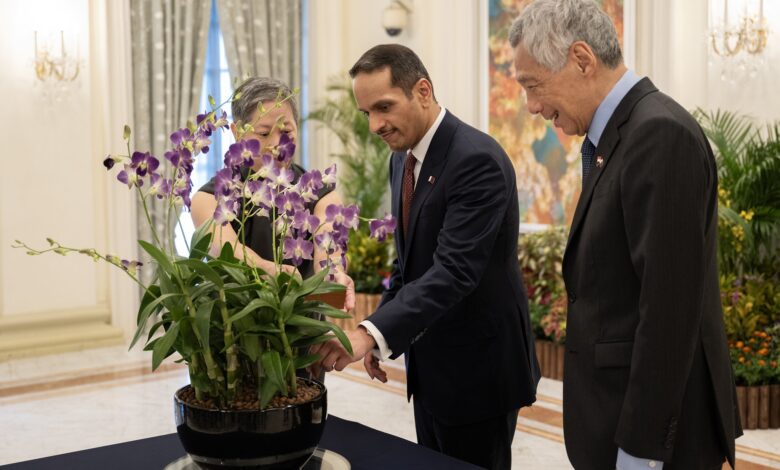 شهد معالي الشيخ محمد بن عبدالرحمن بن جاسم آل ثاني رئيس مجلس الوزراء وزير الخارجية، مع دولة السيد لي هسين لونغ رئيس وزراء جمهورية سنغافورة، مراسم التوقيع على عدد من مذكرات التفاهم والتعاون بين حكومتي البلدين.فقد شهد معاليه ودولة رئيس الوزراء السنغافوري التوقيع على مذكرة تفاهم للتعاون في مجالات التنمية الاجتماعية والأسرة…