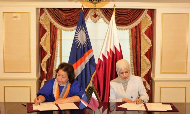 وقعت دولة قطر وجمهورية جزر مارشال على بيان مشترك لإقامة علاقات دبلوماسية بينهما، وذلك في مقر الوفد الدائم لدولة قطر لدى الأمم المتحدة بنيويورك.وقع على البيان من جانب دولة قطر، سعادة الشيخة علياء بنت أحمد بن سيف آل الثاني المندوب الدائم لدولة قطر لدى الأمم المتحدة، ومن جانب جمهورية جزر مارشال، سعادة…