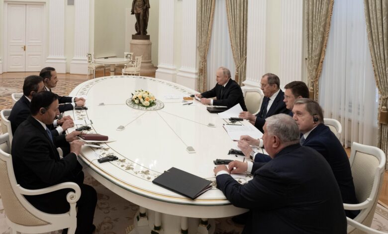 بعث حضرة صاحب السمو الشيخ تميم بن حمد آل ثاني أمير البلاد المفدى، رسالة خطية إلى فخامة الرئيس فلاديمير بوتين رئيس روسيا الاتحادية، تتعلق بالعلاقات بين البلدين الصديقين، وسبل دعمها وتعزيزها.قام بتسليم الرسالة معالي الشيخ محمد بن عبدالرحمن بن جاسم آل ثاني رئيس مجلس الوزراء وزير الخارجية، خلال استقبال فخامة الرئيس الروسي…