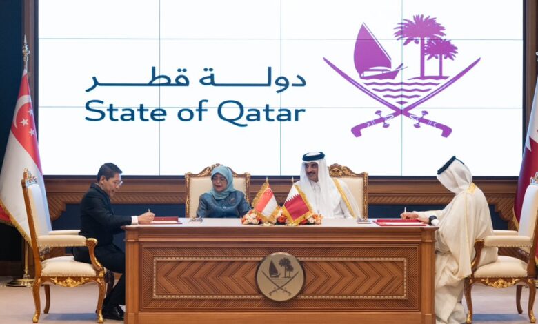 شهد حضرة صاحب السمو الشيخ تميم بن حمد آل ثاني أمير البلاد المفدى، وفخامة الرئيسة حليمة يعقوب رئيسة جمهورية سنغافورة، اليوم في الديوان الأميري، التوقيع على عدد من مذكرات التفاهم بين حكومتي البلدين.فقد شهد سموه وفخامة رئيسة سنغافورة التوقيع على مذكرة تفاهم في مجال الأمن الغذائي بين حكومتي البلدين، ومذكرة تفاهم في…