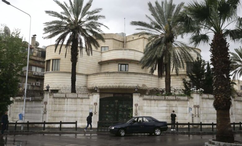 ذكر موقع الخليج اونلاين ان فريق فني سعودي معني بإعادة فتح سفارة المملكة في سوريا إلى دمشق، قد وصل اليوم السبت، تمهيداً لاستئناف عمل البعثات الدبلوماسية؛ ترجمة للتقارب المتصاعد بين البلدين.والتقى الفريق السعودي الذي يترأسه الوزير المفوض غازي العنزي، معاون وزير خارجية النظام السوري أيمن سوسان، ورئيس المراسم في وزارة الخارجية عنفوان…