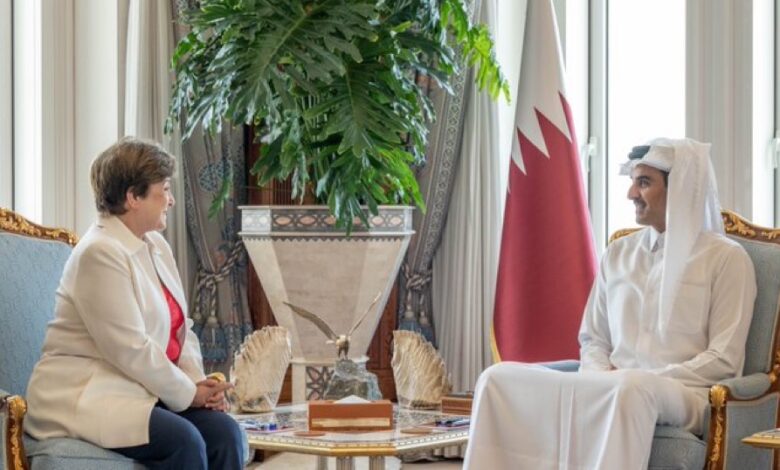استقبل حضرة صاحب السمو الشيخ تميم بن حمد آل ثاني أمير البلاد المفدى، بمكتبه في الديوان الأميري صباح اليوم، سعادة السيدة كريستالينا غورغييفا مدير عام صندوق النقد الدولي والوفد المرافق لها، بمناسبة زيارتها البلاد للمشاركة في منتدى قطر الاقتصادي 2023.جرى، خلال المقابلة، استعراض علاقات التعاون بين دولة قطر وصندوق النقد الدولي وآفاق…