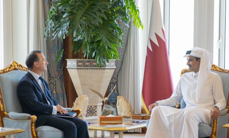 استقبل حضرة صاحب السمو الشيخ تميم بن حمد آل ثاني أمير البلاد المفدى، بمكتبه في الديوان الأميري صباح اليوم، وفدا من أصحاب السعادة أعضاء البرلمان بالمملكة المتحدة الصديقة برئاسة سعادة السيد ألون كيرنز عضو البرلمان، رئيس المجموعة البرلمانية لجميع الأحزاب المعنية بدولة قطر، بمناسبة زيارتهم البلاد للمشاركة في منتدى قطر الاقتصادي 2023.تم،…