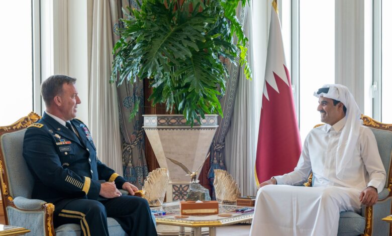 استقبل حضرة صاحب السمو الشيخ تميم بن حمد آل ثاني أمير البلاد المفدى، صباح اليوم، في مكتبه بالديوان الأميري، سعادة الجنرال مايكل كوريلا قائد القيادة المركزية الأمريكية، والوفد المرافق بمناسبة زيارته للبلاد.جرى خلال المقابلة استعراض العلاقات الاستراتيجية بين البلدين الصديقين وآفاق تنميتها وتعزيزها في مجالات التعاون العسكري والدفاعي، بالإضافة إلى تبادل وجهات…