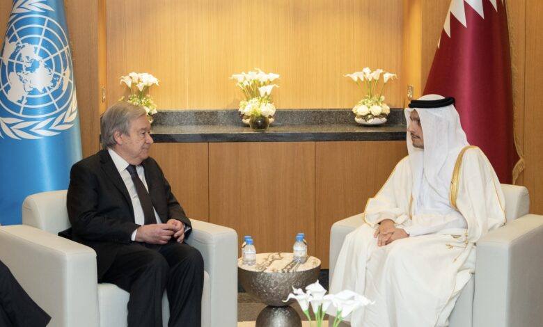 تلقى معالي الشيخ محمد بن عبدالرحمن بن جاسم آل ثاني رئيس مجلس الوزراء وزير الخارجية، اليوم، اتصالا هاتفيا من سعادة السيد أنطونيو غوتيريش الأمين العام للأمم المتحدة. جرى خلال الاتصال، استعراض تطورات الأوضاع في قطاع غزة والأراضي الفلسطينية المحتلة، على ضوء الاتفاق على بنود وآليات تنفيذ المرحلة الأولى من اتفاق وقف إطلاق…