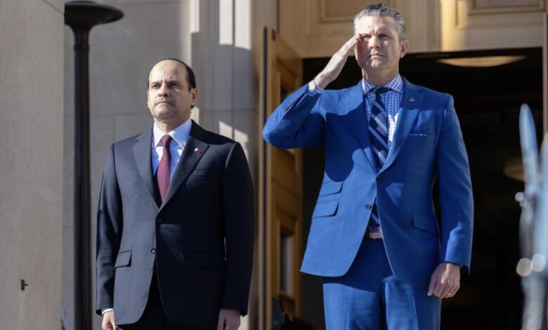 التقى سعادة الشيخ سعود بن عبدالرحمن بن حسن آل ثاني نائب رئيس مجلس الوزراء ووزير الدولة لشؤون الدفاع، سعادة السيد بيت هيغسيث وزير الحرب بالولايات المتحدة الأمريكية الصديقة، وذلك خلال الزيارة التي يقوم بها سعادته إلى واشنطن. جرى خلال اللقاء، استعراض الموضوعات ذات الاهتمام المشترك بين الجانبين، وسبل تعزيز التعاون الثنائي وتطويره،…