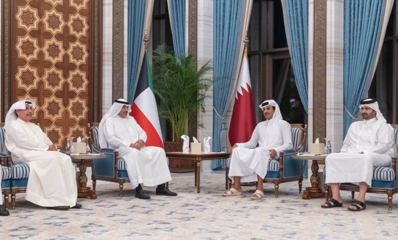 استقبل حضرة صاحب السمو الشيخ تميم بن حمد آل ثاني أمير البلاد المفدى، بمكتبه في قصر لوسيل اليوم، سمو الشيخ صباح خالد الحمد الصباح ولي عهد دولة الكويت الشقيقة، والوفد المرافق لسموه، بمناسبة زيارته للبلاد. وفي بداية المقابلة، نقل سمو ولي عهد الكويت إلى سمو الأمير المفدى تحيات أخيه صاحب السمو الشيخ مشعل…