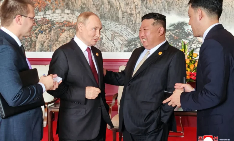 بعد أن جلس كيم جونغ أون مع الرئيس الروسي فلاديمير بوتين في بكين، مسح فريق موظفين من كوريا الشمالية الأشياء التي لمسها زعيم البلاد بعناية، وفقاً لوكالة «رويترز». ويقول محللون إن ما حدث ضمن مجموعة من الإجراءات الأمنية لمنع التجسس. حتى مع إظهار كيم وبوتين علامات الصداقة، رصدت لقطات، أمس (الأربعاء)،التدابير الاستثنائية…