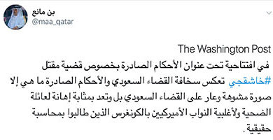 نشرت صحيفة واشنطن بوست مقالا للكاتب ديفد إغناتيوس يتحدث فيه عن قرار المحكمة السعودية بالحكم على خمسة بالإعدام في جريمة مقتل الصحفي جمال خاشقجي بقنصلية بلاده في إسطنبول قائلا: لا نزال لا نملك أجوبة على جريمة قتل خاشقجي. ويقول إغناتيوس إن الوسم الذي كان الأكثر تداولا على تويتر في السعودية…