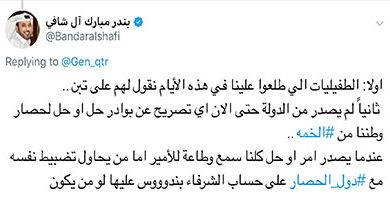 قالت صحيفة “إيلاف” إن تعليمات صدرت من دول الحصار، بعدم التعرض بأي إساءة إلى دولة قطر. وأوضحت أن السعودية، والإمارات، والبحرين، ومصر، تتجه إلى “إرساء توجه على إعلامها بعدم التعرض لدولة قطر في البرامج السياسية والرياضية، وهو ما يمكن تسميته بـ(الغيمة الرابعة) التي تشكلت في سماء دول الخليج والمنطقة العربية…