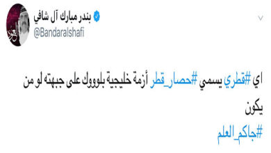 دول الحصار تحاول بكل طريقة ان تثبت على قطر تهمة دعم الإرهاب الذي يقومون هم به ، وقبل ظهور موضوع الصواريخ الجو جو كانوا يظهرون أسلحة قطرية في ليبيا ويتهمون قطر بانها تسلح حكومة الوفاق بزعم ان هذه الأسلحة كانت في يد الثوار الليبين ضد نظام القذافي ولم تكن في…