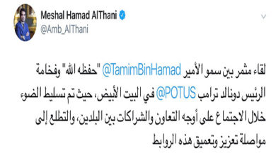 صدر بيان مشترك بين دولة قطر والولايات المتحدة الأمريكية، أكد على الالتزام بالمضي قدما في التعاون الاستراتيجي رفيع المستوى بين البلدين الصديقين، حيث تشترك دولة قطر والولايات المتحدة في تاريخ من الصداقة يقوم على الجهود المشتركة والاحترام المتبادل.وقيما يأتي نص البيان : اليوم، كقادة لدولة قطر والولايات المتحدة الأمريكية، نؤكد…