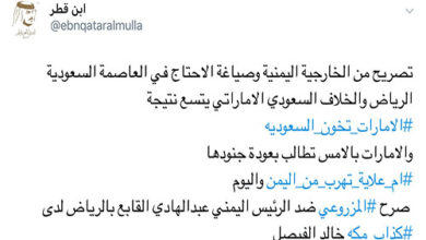 بدأت الإمارات شن هجوم كبير من خلال وسائل إعلامها ومسؤولين على الحكومة اليمنية التي وصفتها بـ”حكومة الفنادق”، على خلفية اتهام الأخيرة لأبوظبي بـ “دعم التمرد” في محافظة عدن جنوبي البلاد. واستخدمت الإمارات وسائل إعلامها وناشطين على مواقع التواصل الاجتماعي للإساءة للحكومة اليمنية، وعلى رأسها الرئيس عبد ربه منصور هادي، بالتزامن مع هجوم من…