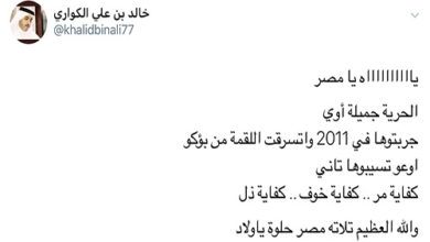قال المقاول والممثل المصري محمد علي في فيديو جديد عبر مواقع التواصل الاجتماعي، ان نزل المصريين إلى انما كان هدفه للمطالبة برحيل الرئيس عبد الفتاح السيسي، ودعاهم إلى كسر حاجز الخوف. وأوضح علي انه دعا المصريين إلى النزول والوقوف بشكل سلمي ولو أمام منازلهم لمدة ساعة واحدة فقط، عقب مباراة…