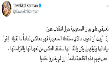 دعت السعودية الانفصاليين الجنوبيين باليمن إلى التخلي عن السيطرة على مدينة عدن، وعبرت عن دعمها للحكومة الشرعية، وذلك في مؤشر على اتساع هوة خلافها مع حليفتها الإمارات. وأكدت الرياض -في بيان نشرته وكالة الأنباء السعودية الرسمية- رفضها لتطورات الأحداث في عدن ومحافظات اليمن الجنوبية، وقالت إنها ترفض الآثار التي ترتبت…