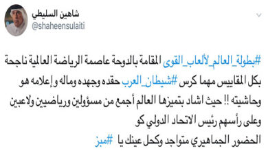 توج سعادة الشيخ جوعان بن حمد آل ثاني رئيس اللجنة الأولمبية القطرية رئيس اللجنة المنظمة العليا لبطولة العالم لألعاب القوى الدوحة 2019 ، البطل العالمي والأولمبي القطري معتز برشم بذهبية مسابقة الوثب العالي اليوم، ضمن منافسات اليوم قبل الأخير للبطولة المقامة داخل استاد خليفة الدولي وكورنيش الدوحة . وكان برشم…