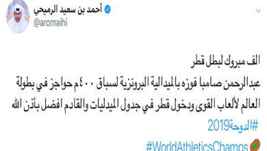 برونزية قطرية في بطولة قوى العالم على يد صامبا