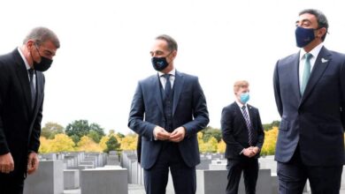 التقى وزير الخارجية الإسرائيلي غابي أشكنازي نظيره الإماراتي عبد الله بن زايد في متحف الهولوكوست في برلين، في أول لقاء علني بينهما منذ توقيع اتفاق التطبيع بين الجانبين. وبثت وسائل إعلامية صوراً للقاء الوزراء الثلاثة وزيارتهم لمتحف الهولوكوست، حيث ظهر بن زايد يسلم على نظيره الإسرائيلي متخذاً إجراءات السلامة بسبب جائحة كورونا.…