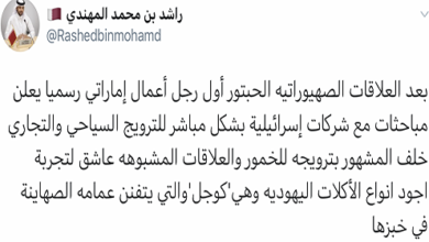 اعتبر علي النعيمي، رئيس لجنة الدفاع والداخلية والخارجية بالمجلس الوطني الاتحادي الإماراتي، أن السلام مع “إسرائيل” هو سلام للمنطقة بأكملها. وفي مقابلة مع قناة “مكان” الإسرائيلية، شكر النعيمي رئيس الوزراء الإسرائيلي بنيامين نتنياهو والقيادة الإسرائيلية على توقيع اتفاق السلام مع الإمارات، واصفاً إياه بـ”خطوة حكيمة”. وأضاف: “شعوب المنطقة، وخاصة الفلسطينيين،…
