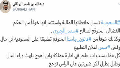 طالب خالد الجبري، نجل ضابط الاستخبارات السعودي السابق سعد الجبري، حكومة الرياض بتقديم دليل على أن شقيقه عمر وشقيقته سارة ما زالا على قيد الحياة، واصفاً القضية بأنها “كابوس مستمر”. وقال خالد (36 عاماً)، وهو طبيب يقيم حالياً في كندا، لشبكة “فوكس نيوز” الأمريكية: إن “أشقائي الاثنين محتجزان حالياً لدى الحكومة السعودية…