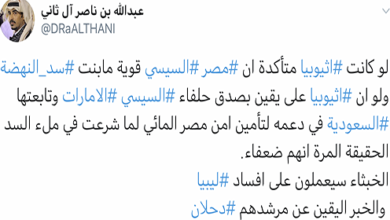 لن نكون مع اثيوبيا على حساب مصلحة الشعب المصري في قضية سد النهضة ، ولكن على الشعب المصري الشقيق ان يعرف ويدرك ان ماقامت به اثيوبيا ناتجاً عن انقلاب السيسي العسكري على الحكم المنتخب ، حكم مرسي الراحل مما جعله يقدم تنازلات بتوقيعه على اتفاقية سد النهضة مع اثيوبيا عام…