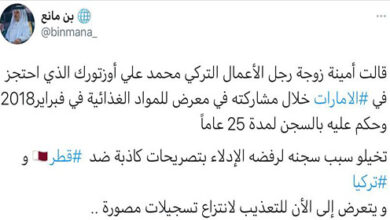 قالت أمينة أوزتورك، زوجة رجل الأعمال التركي محمد علي أوزتورك، الذي احتُجز في الإمارات خلال مشاركته في معرض للمواد الغذائية في فبراير 2018 وحُكم عليه بالسجن لمدة 25 عامًا، إنها عاشت تجربة مريرة في الإمارات. وأضافت أوزتورك، أنها كانت برفقة زوجها محمد علي أوزتورك في رحلتة إلى دبي، في فبراير…