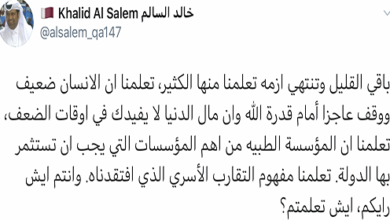 في إطار بدء تنفيذ المرحلة الثانية من خطة الرفع التدريجي المحكم للقيود المفروضة في دولة قطر جراء تفشي فيروس كورونا (كوفيد-19)، فقد قررت اللجنة الدائمة لشؤون المنطقة الصناعية إلغاء نقاط الدخول والخروج من وإلى المنطقة الصناعية ابتداءً من يوم غدٍ الأربعاء، مع المحافظة على تطبيق الاجراءات الوقائية من لبس الكمامات…