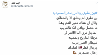تسجيل مسرب ليوسف بن علوي وزير الخارجية العُماني مع القذافي ، وتسجيلات الحمدين مع القذافي ، وتسجيل مكالمة بين حمد بن خليفة العطية مع أحد قيادات جمعية الوفاق البحرينية. للعلم .. دول الحصار تثير هذه المواضيع للاستهلاك الإعلامي فقط ولمآرب خبيثة ولتحسين القبيح في دول الحصار وتقبيح الحسن في الآخرين…