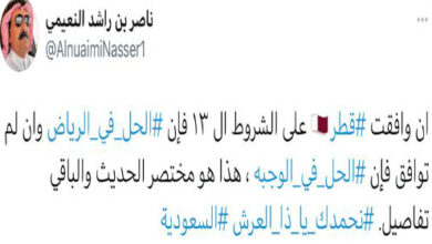 تناقلت عدد من المواقع والوكالات الاخبارية التصريحات التي أدلت بها المتحدثة باسم الخارجية القطرية سعادة السيدة لولوة الخاطر وقالتفيها إن “حل الأزمة الخليجية سيمثل ربحا للجميع”. وأضافت ان “الاتفاق على حل الأزمة الخليجية، سيضمن وحدة الشعوب وأمن المنطقة وسيادة كل دولة”. وكانت الخاطر مساعدة وزير الخارجية القطري قد أكدت إن بيان دولة الكويت المتعلق بجهود المصالحة خطوة مهمة وإيجابية. وذكرت في تصريح للجزيرة أن المناقشات الأخيرة كانت تهدف إلى وضع إطار عام للحوار في اتجاه إنهاء الأزمة الخليجية. وأضافت لولوة الخاطر -في مقابلة مع الجزيرة- أن قطر تلتزم في…