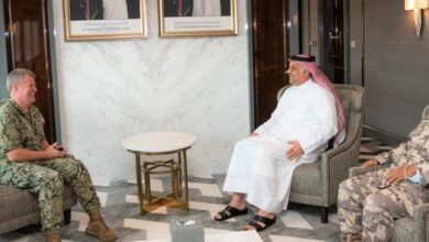 استقبل خالد العطية، وزير الدولة القطري لشؤون الدفاع، اليوم الثلاثاء، قائد القوات البحرية في القيادة المركزية الأمريكية في الشرق الأوسط. وقالت وزارة الدفاع القطرية إن العطية ناقش مع الفريق بحري صامويل بابارو، القضايا المشتركة والتعاون العسكري بين البلدين، وسبل تعزيزها وتطويرها. وتأتي هذه الزيارة بعد أيام من توعد إيران بـ”انتقام صعب وقاسٍ” بعد…