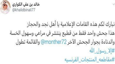 أعلنت شركة الميرة للمواد الإستهلاكية سحب المنتجات الفرنسية من جميع فروعها داخل الدولة وحتى إشعار آخر وذلك نزولا عند رغبة عملائها وتعليقاتهم التي طالبت بمقاطعة المنتجات الفرنسية الموجودة في الأسواق القطرية بعد تعمد إحدى الصحف الفرنسية نشر صور كاريكاتورية مسيئة للنبي محمد صلى الله عليه وسلم تعتبر تعديا على المعتقدات…