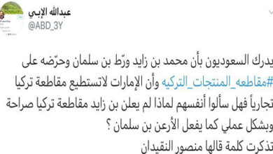 أثار الكاتب السعودي “سعود الفوزان” ضجة واسعة حول ما رآها مفارقة بتصدير الإمارات منتجات غير صالحة للاستخدام إلى السعودية، تزامنا مع إطلاق حملة إلكترونية بالمملكة ضد المنتجات التركية، وفسح المجال لمنتجات دول أخرى بينها إسرائيل. وكتب “الفوزان”، عبر تويتر: “جبل علي اسم على غير مسمى، كيف لإخواننا في الإمارات أن…