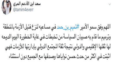 أعرب سمو أمير قطر الشيخ تميم بن حمد آل ثاني عن شكره لفخامة الرئيس الإيراني، ولإيران حكومة وشعبا على ما لقيه من استقبال خلال زيارة سموه إلى طهران. وأكد سموه خلال تصريحات صحفية مشتركة أدلى بها مع فخامة الرئيس الدكتور حسن روحاني رئيس الجمهورية الإسلامية الإيرانية عقب المباحثات في القصر…