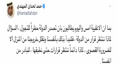 أعلنت دولة قطر، مساء السبت، عن إجراءات وتدابير وقائية جديدة تستهدف منع أشكال التجمع كافة؛ للحد من انتشار فيروس “كورونا المستجد”، في وقت كشفت فيه عن ارتفاع بعدد حالات شفاء المصابين بالوباء.وكشفت اللجنة العليا لإدارة الأزمات، على لسان المتحدثة باسمها لولوة الخاطر، “منع التجمعات في الكورنيش والحدائق العامة والشواطئ والتجمعات…