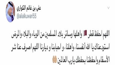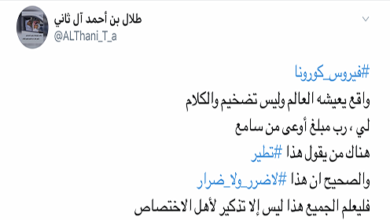 الوضع خطير جدا وعلينا التوكل على الله سبحانه وتعالى واتخاذ الاسباب . الاسباب بعد التوكل على الله هي: – الابتعاد عن الخروج من المنزل بدون سبب ضروري . – هذا الفايروس يوجد على الاسطح لذلك يجب علينا توخي الحذر من لمس الاسطح ايا كانت .. وتستخدام القفازات وعدم لمس الوجه…