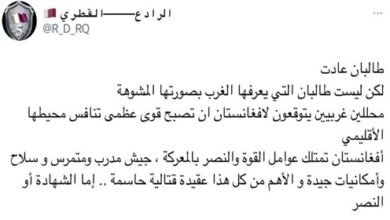 قال مكتب الاتصال الحكومي القطري، اليوم الجمعة، إن التسوية السياسية الشاملة بأفغانستان لن تتحقق إلا عبر الدبلوماسية والحوار، وذلك بعد سيطرة حركة طالبان على زمام الأمور في البلاد.وأضاف المكتب في بيان، إن الدوحة “تعمل مع الأمم المتحدة وواشنطن وشركائنا الدوليين لضمان سلامة الشعب الأفغاني”.وتابع قائلاً: “نعمل مع شركائنا الدوليين لتأمين ممر…