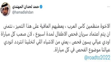 أعلنت وزارة لصحة العامة، واللجنة العليا للمشاريع والإرث، عن دعم حملة “لنعمل معاً” (#ACTogether) خلال كأس العرب FIFA قطر 2021™، التي تتواصل منافساتها حتى 18 ديسمبر الجاري. وتهدف الحملة التي أطلقتها منظمة الصحة العالمية والاتحاد الدولي لكرة القدم (الفيفا)، إلى الدعوة للعمل المشترك وتوحيد الجهود من أجل ضمان الوصول العادل…