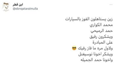 نقلت قناة روسيا اليوم عن مكتب رئيس وزراء لبنان، نجيب ميقاتي، قوله أن أمير قطر، سمو الشيخ تميم بن حمد آل ثاني، ينوي إرسال وزير خارجية بلاده إلى بيروت لبحث سبل تسوية الأزمة اللبنانية الخليجيةوذكر مكتب ميقاتي، في بيان، أنه عقد لقاء اليوم الاثنين في مدينة غلاسكو الإسكتلندية على هامش…