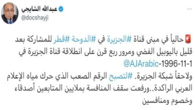 قال الأمير الوالد الشيخ حمد بن خليفة آل ثاني إن إطلاق شبكة الجزيرة عام 1996 باللغتين العربية والإنجليزية وغيرهما كان هدية قطر للباحثين عن أخبار العالم وشؤونه، مؤكدا أهمية الإعلام الرصين.وأشار -في احتفال الشبكة بمرور 25 عاما على انطلاقها- إلى أنه كان هناك إدراك بأنه ستكون هناك عقبات كبرى وتحديات،…