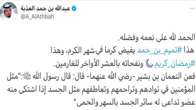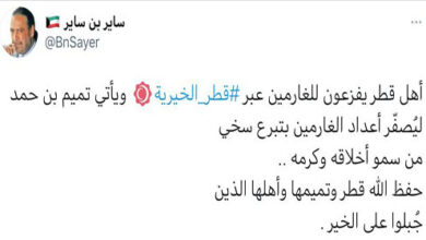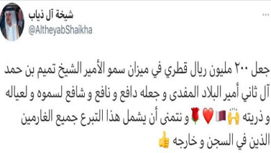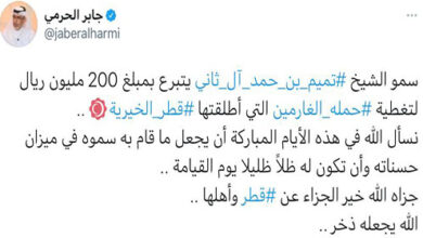 تواصلاً مع مكارم سمو الأمير المفدى حفظه الله ، فقد تفضل سموه الكريم وتبرع بمبلغ ٢٠٠ مليون ريال لتغطية حملة الغارمين التي اطلقتها قطر الخيرية. وذكر حساب قطر الخيرية انه تم بحمد الله وتوفيقه جمع لحملة الغارمين مبلغ اجمالي مقداره 28 مليون ريال من عدد من المتبرعين جزاهم الله خيرا.…