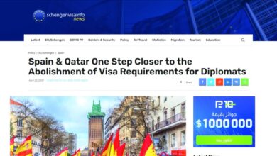 ذكر موقع الشرق أن مجلس الوزراء الإسباني وافق على اتفاقية المحاكم العامة لإلغاء متطلبات التأشيرة لحاملي جوازات السفر الدبلوماسية والخاصة والخدمة بين إسبانيا وقطر في 20 أبريل. تهدف الاتفاقية التي تم التوصل إليها إلى دعم علاقات التعاون بين البلدين وكذلك تعزيز حرية التنقل لحاملي جوازات السفر هذه، وفقًا لتقرير منشور…
