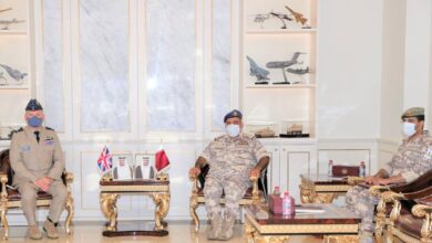 اجتمع سعادة الفريق الركن طيار غانم بن شاهين الغانم رئيس أركان القوات المسلحة، مع سعادة الفريق طيار مارتن سامبسون كبير مستشاري الدفاع للشرق الأوسط في وزارة الدفاع البريطانية، والذي يزور البلاد حالياً. جرى خلال الاجتماع استعراض أوجه التعاون العسكري بين البلدين الصديقين، وسبل تعزيزها.
