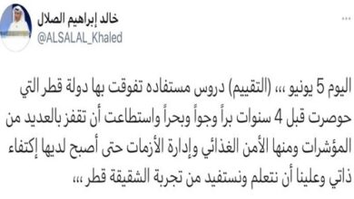 في مثل هذا اليوم الخامس من يونيو قبل أربع سنوات ، حصل منعطف مهم في علاقتنا مع أشقائنا في ثلاثة من دول مجلس التعاون الخليجي ومصر بعد ان أعلنت كل السعودية والإمارات والبحرين ومصر قطع علاقاتها الدبلوماسية مع دولة قطر، وفرض الحصار عليها بإغلاق كافة المنافذ الجوية والبحرية والبرية .…